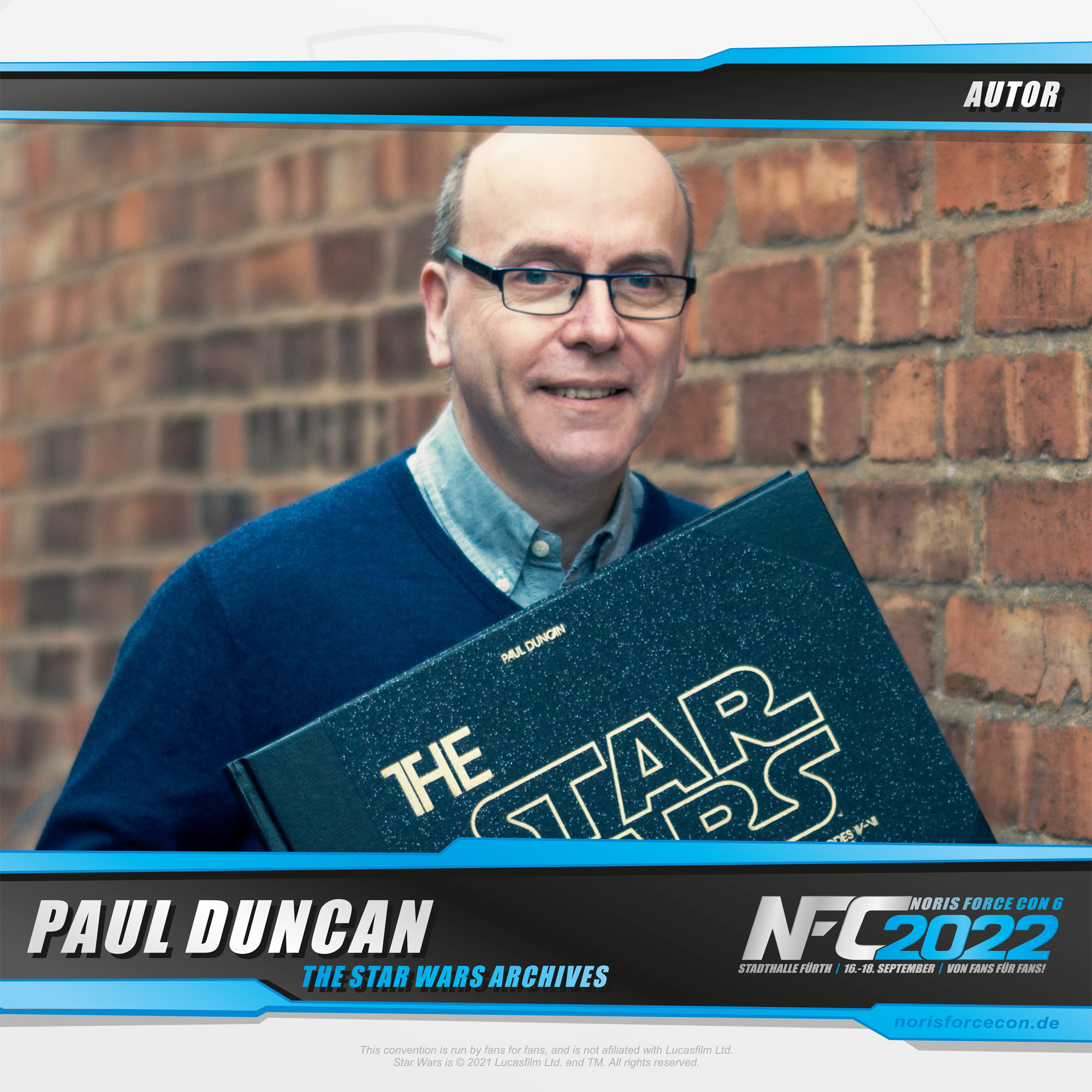 Paul Duncan auf der Noris Force Con begrüßen zu können. Wenn man meinte, schon alles über Star Wars und die Entstehung zu wissen, belehrte uns Paul mit seinen The Star Wars Archives Büchern eines Besseren. Kein Wunder, hatte der Filmhistoriker schon mit entsprechenden Werken zu James Bond oder Charlie Chaplin, dem The Godfather Family Album, Taxi Driver, Film Noir oder Horror Cinema und vielen weiteren sein Können unter Beweis gestellt und neue Einblicke in die Produktionen geboten.