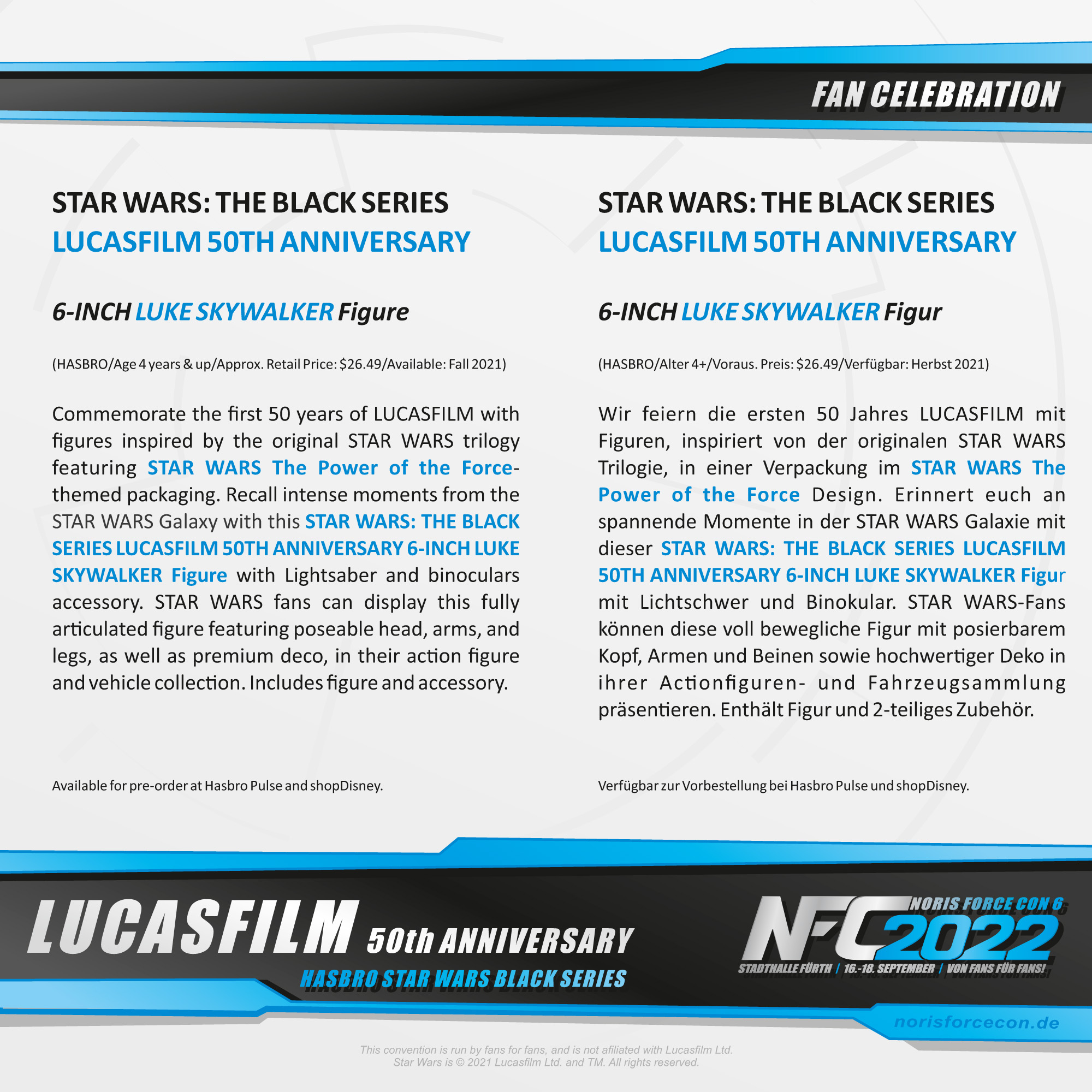 An diesem Wochenende hätte sie eigentlich stattgefunden – die Noris Force Con 6. Durch die Corona Pandemie waren wir gezwungen, die Veranstaltung zu verschieben. Doch wir sind voller Zuversicht, dass die NFC6 nun nächstes Jahr auch wirklich „wie gewohnt“ stattfinden können wird. Und damit ihr seht, dass wir in der Zeit nicht untätig waren, bekommt ihr hier die erste Gast‐Ankündigung für die Noris Force Con 6!