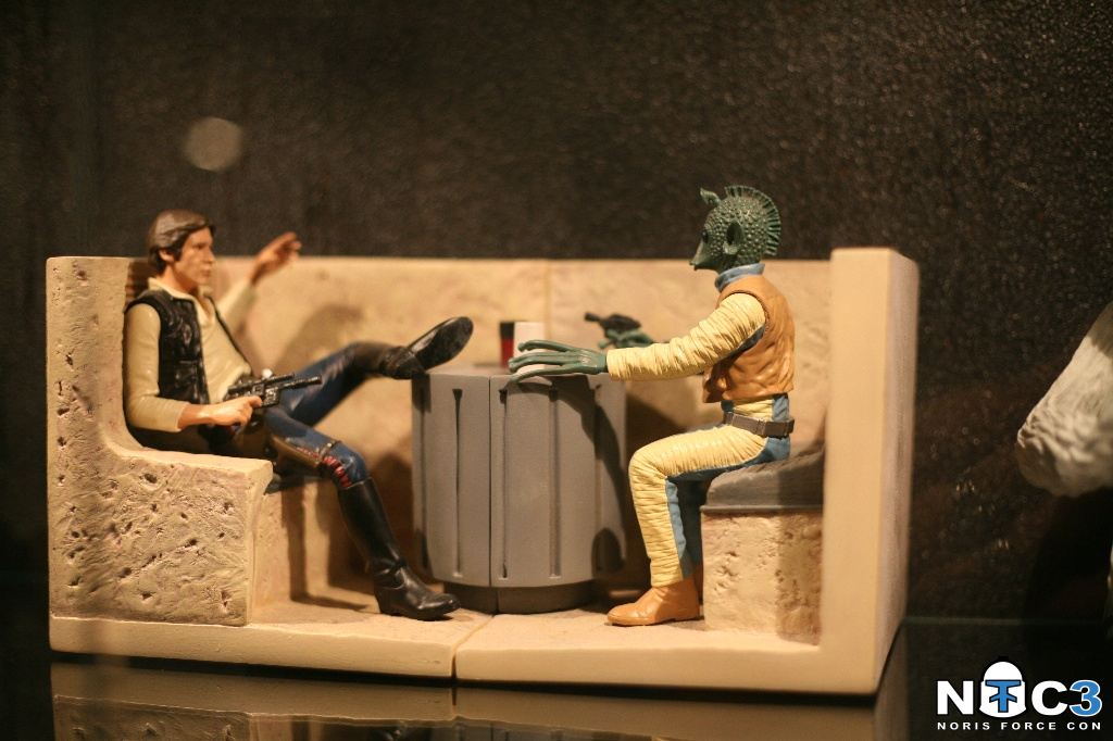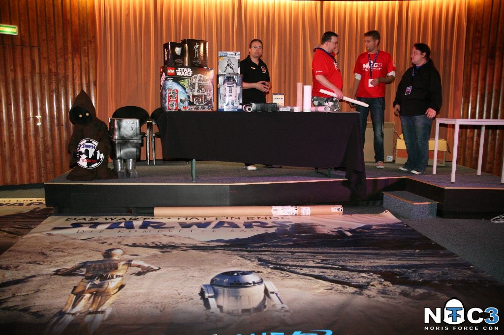 Wenn man den Geldbeutel schon mal in der Hand hatte, ging man einen Schritt daneben zur „Losbude“ und versuchte sein Glück bei der Tombola. Hier gab es von unseren Sponsoren alles erdenkliche zu gewinnen, um das Star Wars Fanherz zu erglücken: Lichtschwerter, Actionfiguren, Comicbücher, Romane, Kühlschrankmagneten, die BluRay-Boxen, LEGO Anhänger und Mini-Kits, Puppen und vieles vieles mehr.