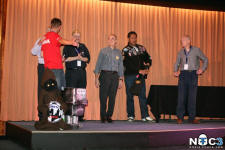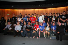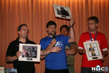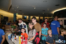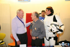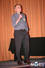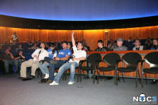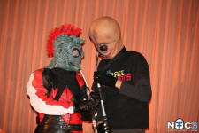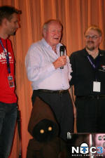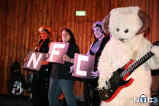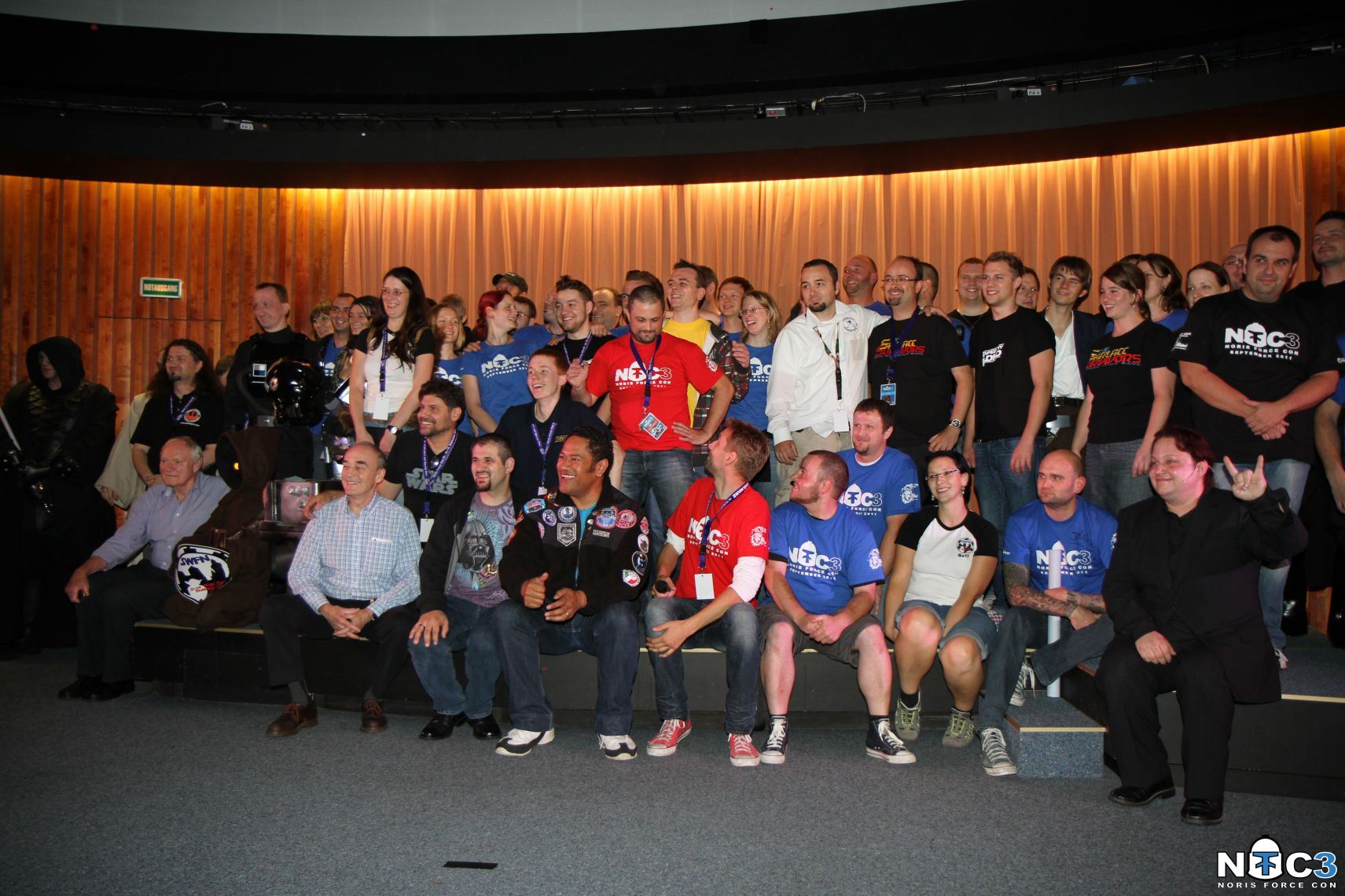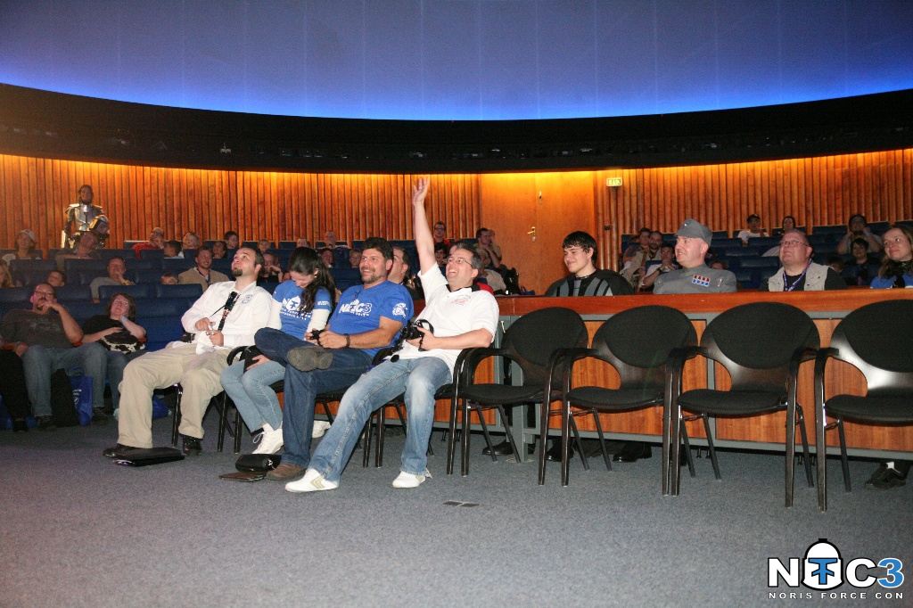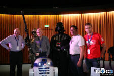 Dass auch eine Convention irgendwann zu Ende geht, mussten wir mit der Closing feststellen. Die kam schneller als wir erhofft haben. Eingeleitet wurde sie durch die Planetariumsshow „The Death Star“, der uns entgegen flog und durch den Weltraum seine Runden zog. Danach ging es zunächst formeller weiter. Conventionüblich holten wir nochmals unsere Gäste auf die Bühne, bedankten uns bei unseren Sponsoren und hatten die einmalige Gelegenheit, das komplette Helferteam auf der Bühne zu versammeln. Die feierliche Stimmung hatten wir genutzt, um ein neues Ehrenmitglied in unsere Reihen aufzunehmen: Jürgen Sadurski, technischer Leiter des Planetariums, der uns jeder Zeit bereits zur NFC2, wie auch jetzt bei der NFC3 jeden Wunsch erfüllt hat und nichts unmöglich erschienen lies.