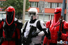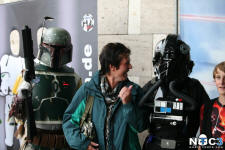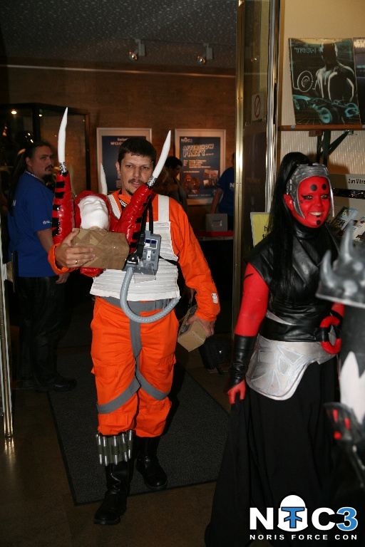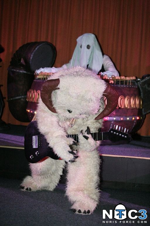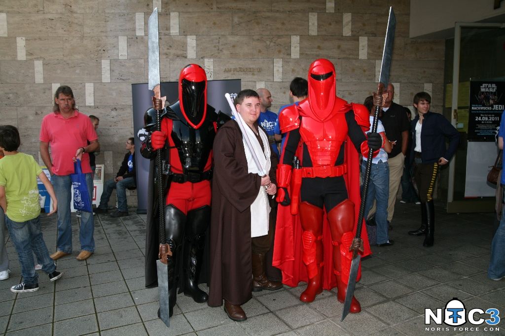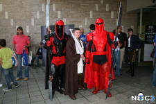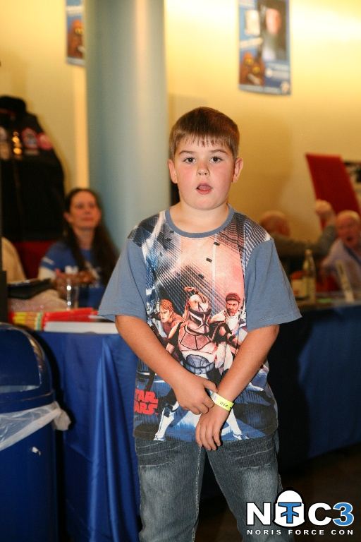 Neben den Panels gab es die Vorträge von Robert Vogel „Kuriose und interessante Geschichten“, von Dr. Hubert Zitt „The science of Star Wars“ und „Descendants of Order 66“ von Dr. Christian Krey. Fürs Auge gab es dann im Kostümwettbewerb jede Menge äußerst gute Kostüme zu sehen. Sichtlich schwer tat sich die Jury das wohl beste zu finden, da sie alle den ersten Platz verdient hätten. Dennoch wurde letztendlich die Legacy-Gruppe für ihre Sith-Kostüme gekrönt. Das wohl besondere Stück der Auktion hatte Jay Laga’aia mitgebracht: Ein Plakat der alten Trilogie mit George Lucas Autogramm und dem Satz „May the Force be with You“ hat nun einen neuen, glücklichen Besitzer. Das angekündigte Sonderprogramm war das vierzig Mann starke Orchester aus Aurach, das ein Konzert mit den größten Science-Fiction Melodien der Filmgeschichte zum Besten gab. Zum Abschluss des Tages gaben sich die „Sarlacc Survivors“ die Ehre und rockten mit ihrer „Back on Earth“ Tour den Kuppelsaal.
