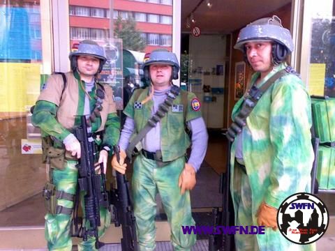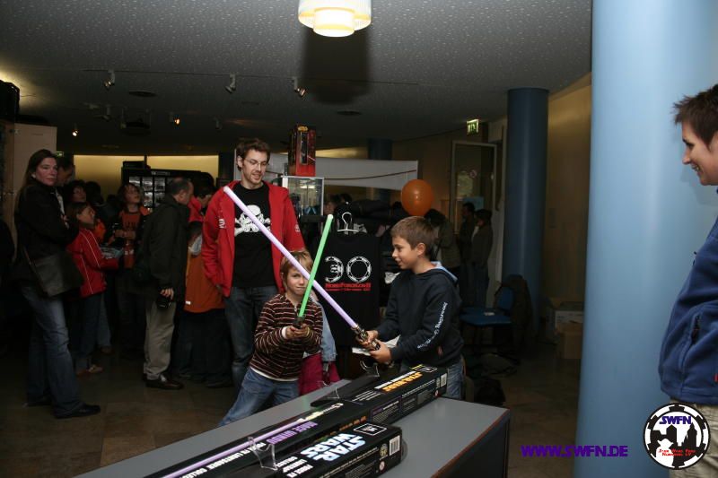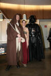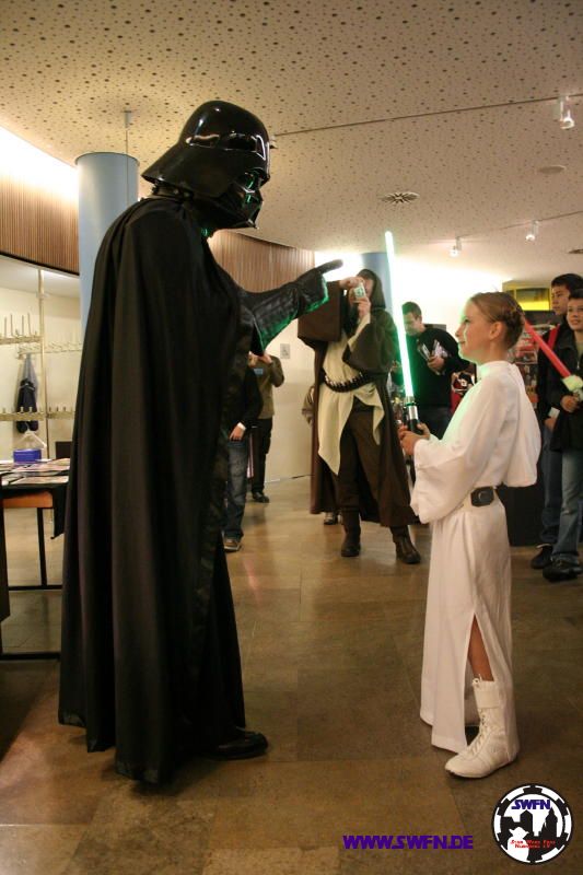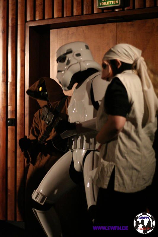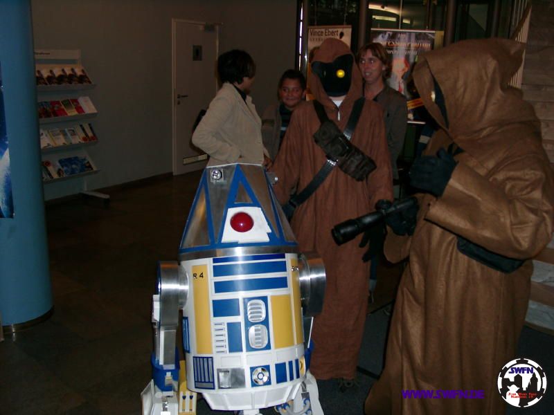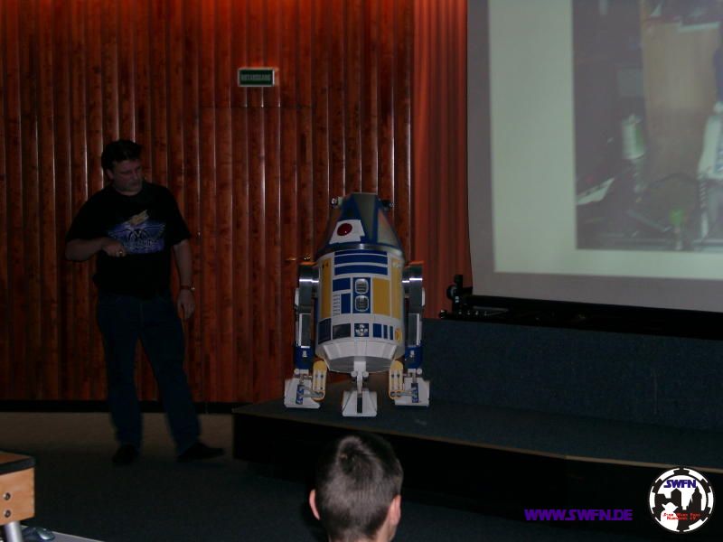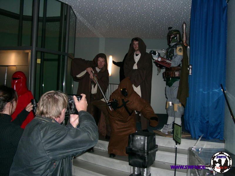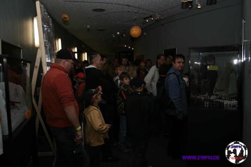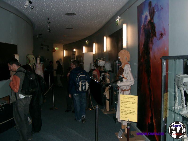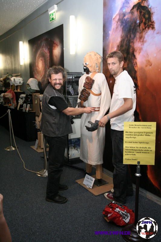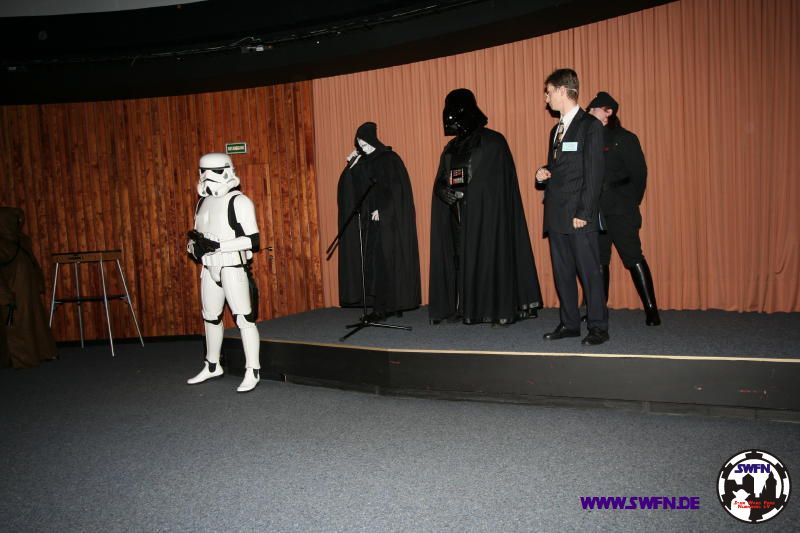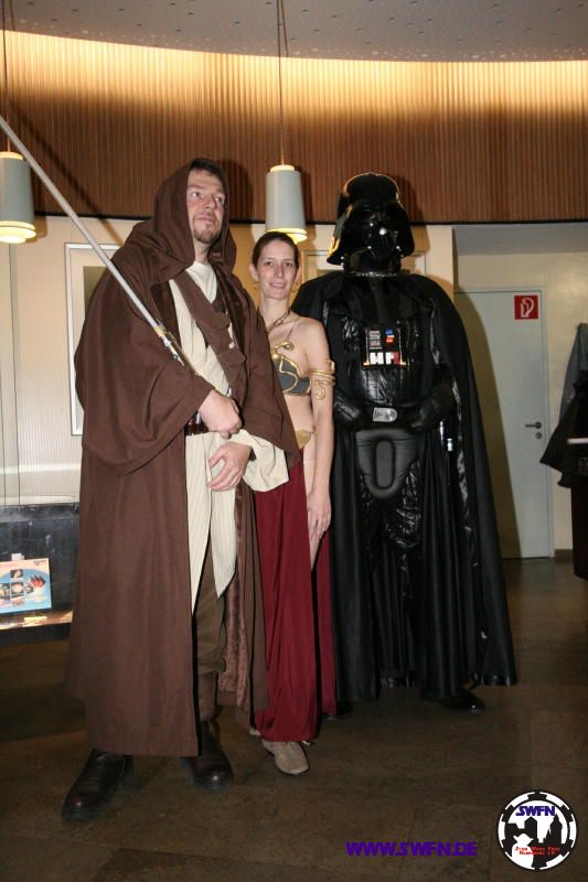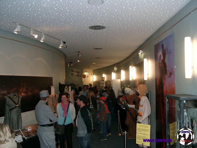 Unsere Vortragsredner Hubert Zitt, Jan Laube, Thomas Riedel, Jürgen Vogel, Buzz und Thorsten Lachner, boten an allen drei Tagen ein buntes Vortragsprogramm, daß ebenso gut besucht war, wie die große Dioramen-, Vintagefiguren- und Kostümausstellung, die sich über alle Stockwerke des Planetarium erstreckte. Besucher im Alter zwischen 1 und 70 Jahren nahmen an unserer Tombola und dem Star Wars Trivia Game teil um einen der zahlreichen Preise zu gewinnen. Einige der Fans waren natürlich in Kostümen angereist und boten den Besuchern somit noch weiteres Futter für ihre Kameras. Besonderes Aufsehen erregten aber unsere Kostümwettbewerbsgewinner vom Sonntag: Darth Vader und Leia im Slave Outfit.