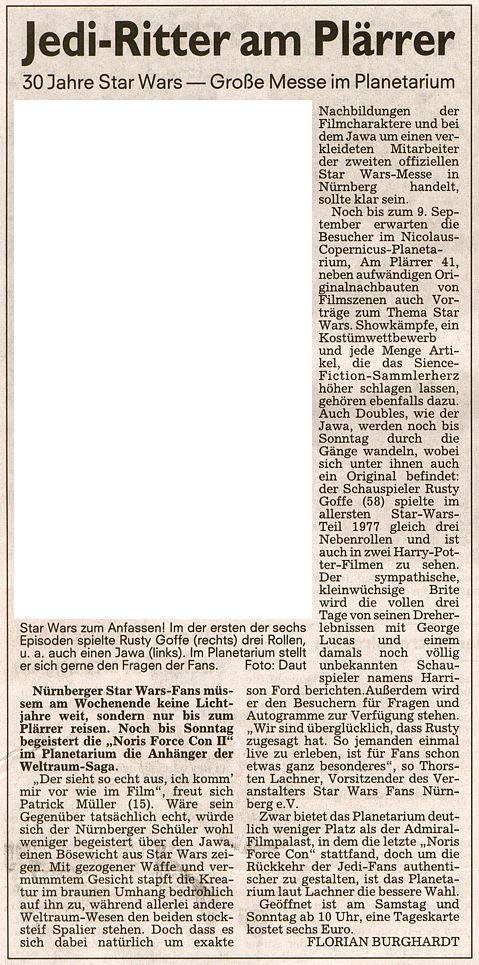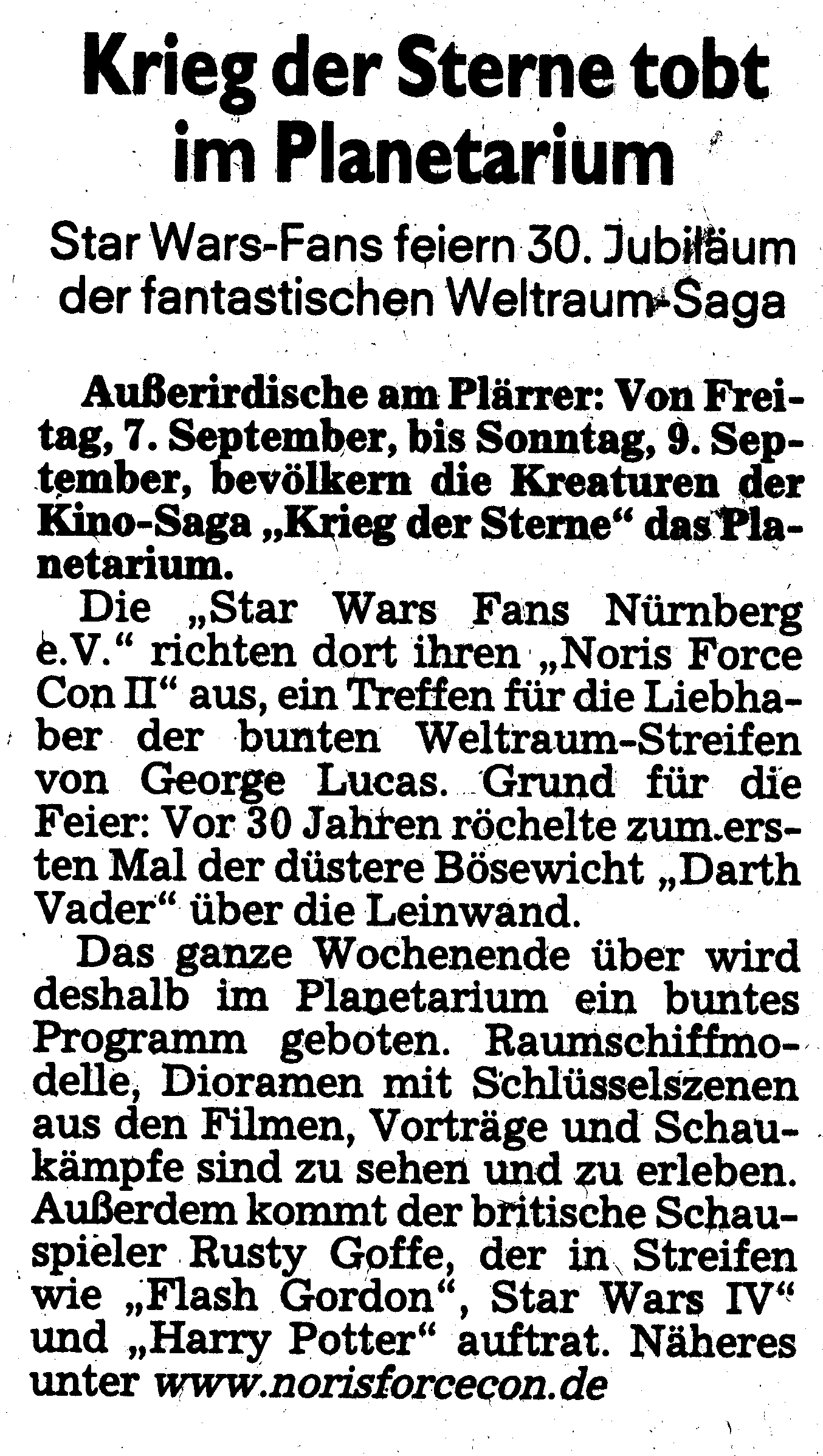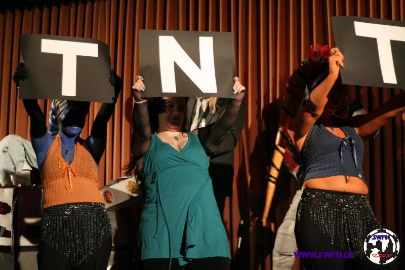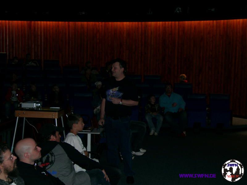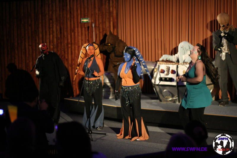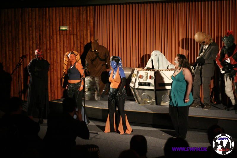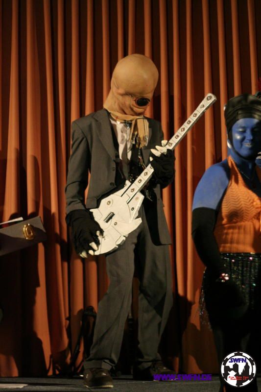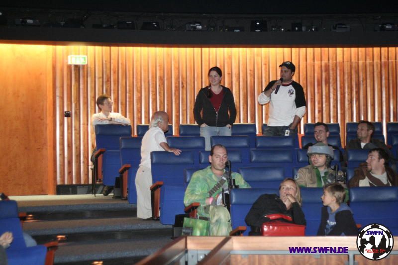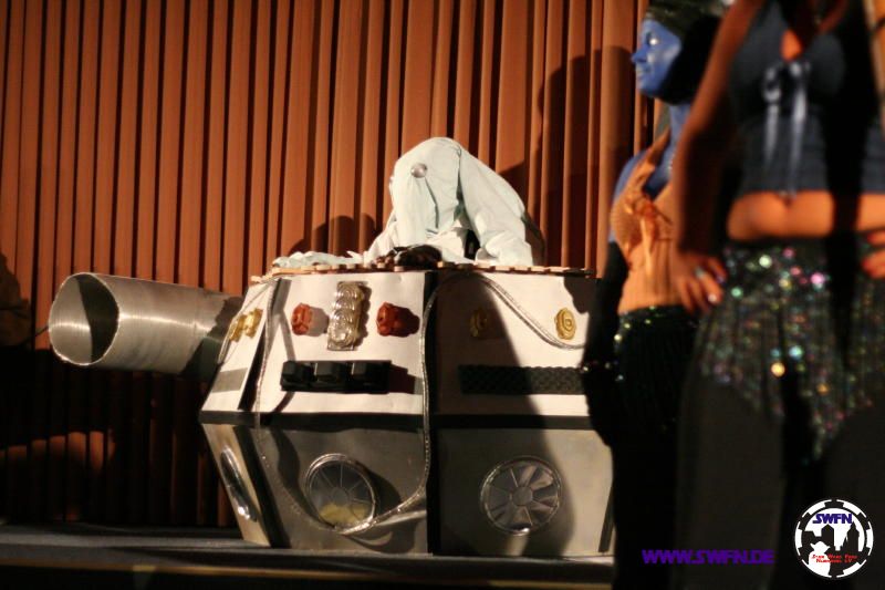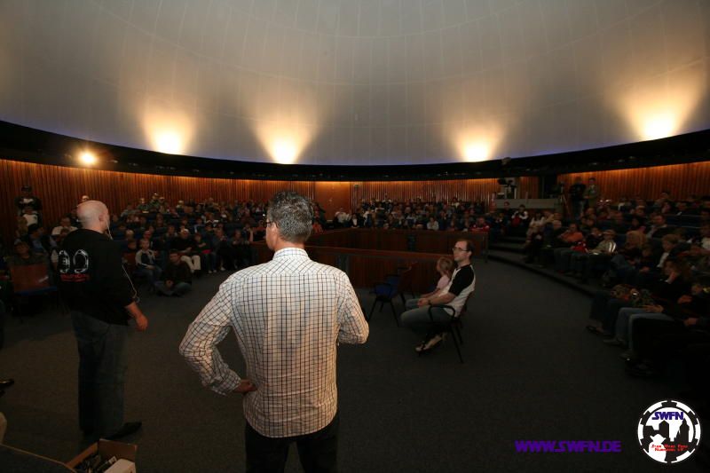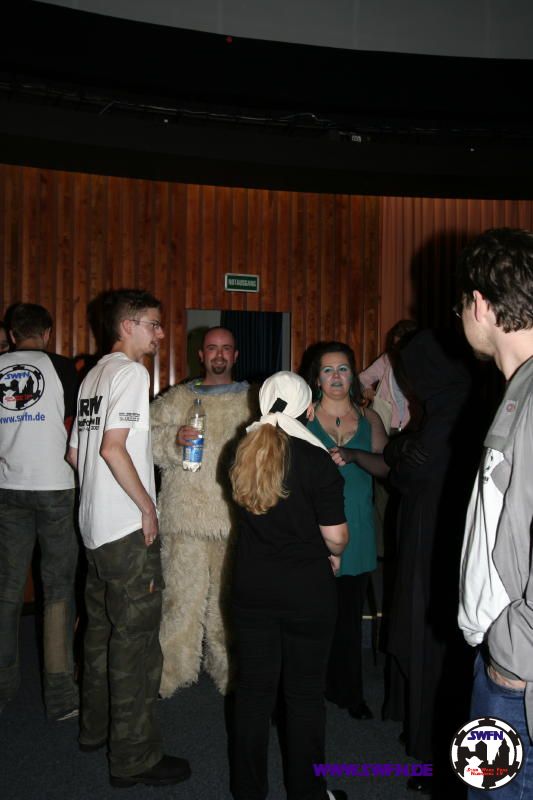 Der Kuppelsaal des Planetariums bildete mit seinen technischen Möglichkeiten die besten Vorraussetzungen, um unser Programm ins rechte Licht zu Rücken. Am Samstag abend reizten wir die Licht- und Tontechnik dann bis zum Äußersten aus. Die Sarlacc Survivors sorgten mit der „Rock the Galaxy Musik Show 2007“ für begeisterte Zuschauer. Nach drei Zugaben und etlichen Litern Schweiß saßen die Bandmitglieder und Conhelfer nach der der Show noch mit Rusty und Hubert Zitt zu einem kleinen Umtrunk zusammen.