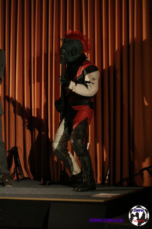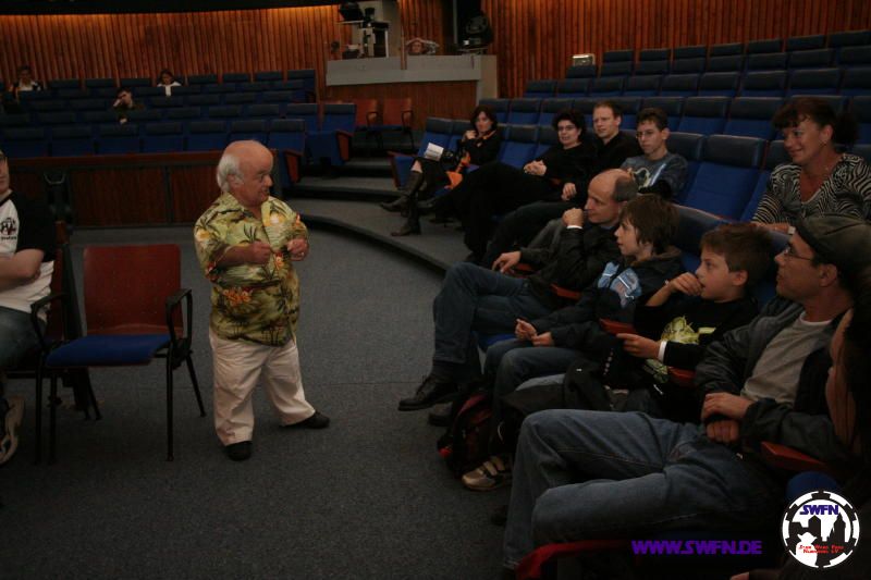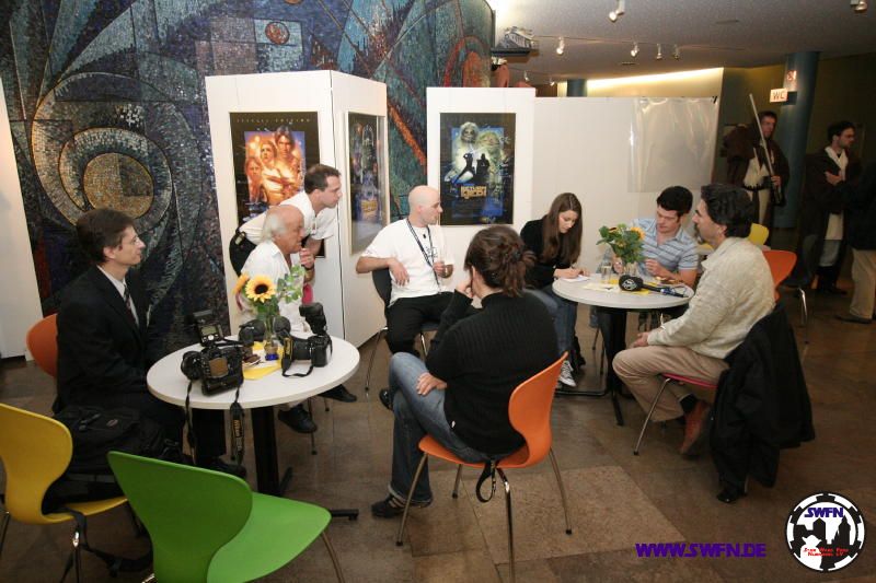 Gut gelaunt traf unser Gaststar Rusty Goffe im Planetarium ein und stand, zusammen mit Dr. Lemmer und unserem Con-Leiter Thorsten, der Presse Rede und Antwort. Bereits beim Pressegespräch gab Rusty einen kleinen Vorgeschmack auf die interessanten und witzigen Anekdoten von den Dreharbeiten seiner zahlreichen Filme, mit denen er die Besucher in den nächsten Tagen während seiner Frage und Antwort Panels unterhielt.