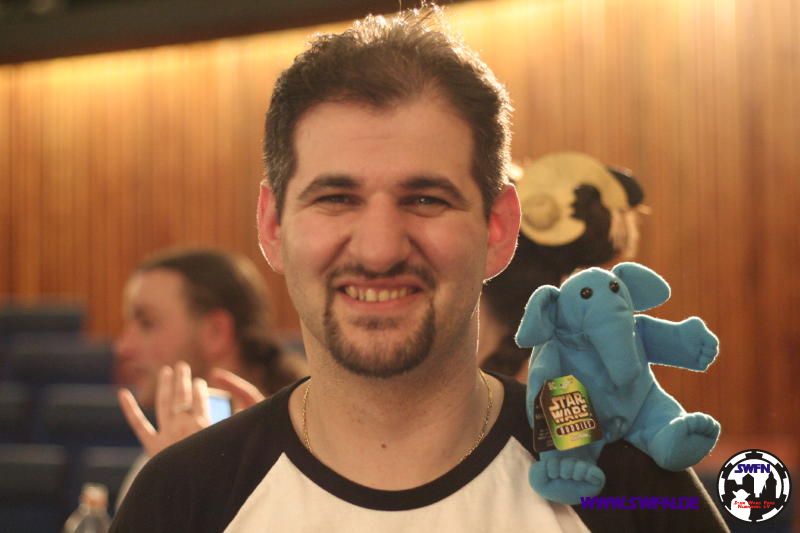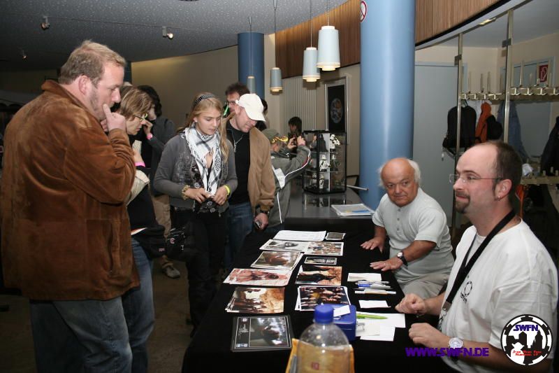 Unsere Händler Buzztoys und Familie Luschnat hatten am Freitag bereits Schwierigkeiten Jawa-Figuren zu organisieren, da die Nachfrage so groß war. Schließlich unterschrieb Rusty nicht nur seine selbst mitgebrachten Autogrammbilder, sondern auch Merchandiseartikel und eigene Fotos der Fans.